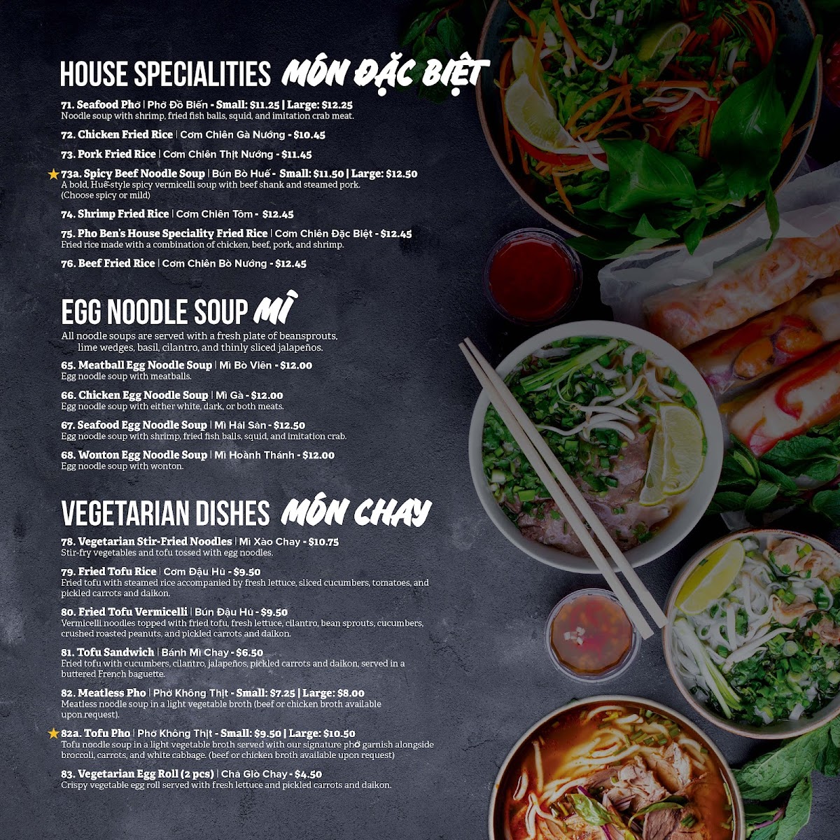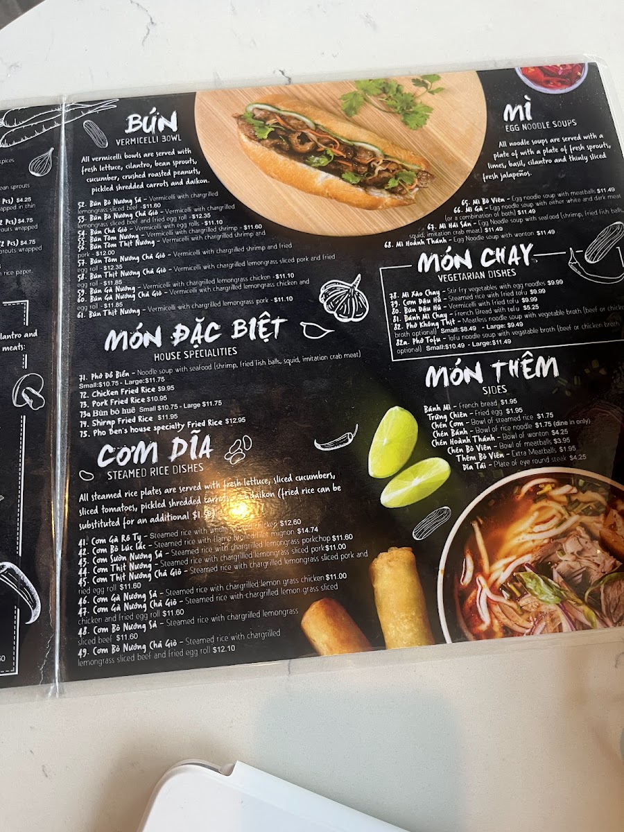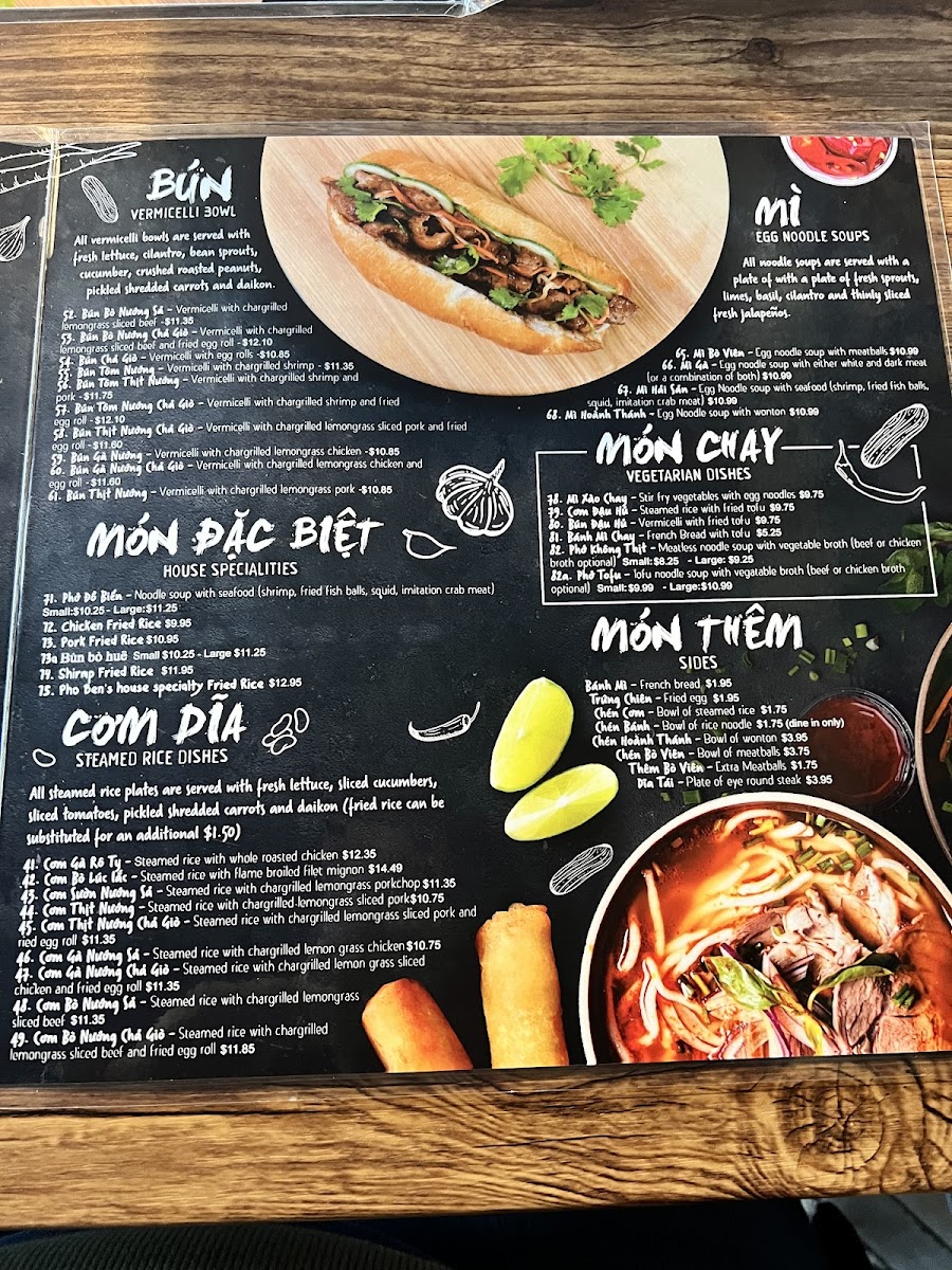The menu at Pho Ben features a plethora of delectable dishes that showcase the rich flavors and textures of Vietnamese cuisine. Begin your culinary journey with their signature pho, particularly the #24 combination pho, known for its rich, savory broth and generous portion sizes. Pair it with grilled pork spring rolls that are crisped to perfection for a delightful contrast in textures.